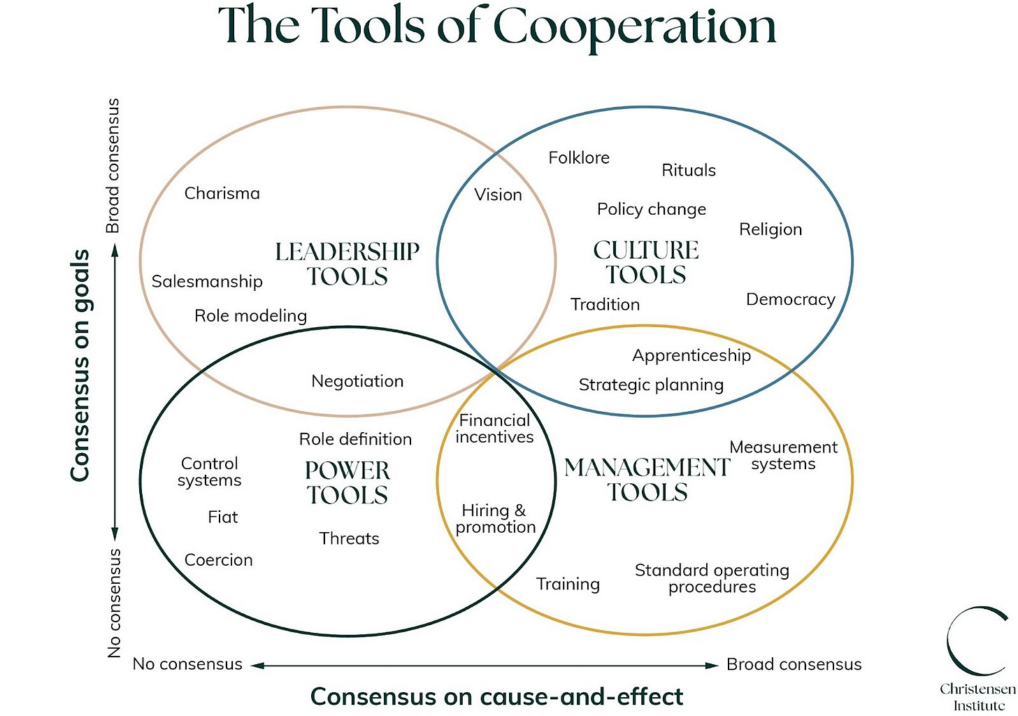 Once leaders identify their stakeholders’ consensus on goals and the pathways to achieve outcomes, leaders can leverage the most effective tools for the situation. The boundaries are directional, not rigid, and they help leaders match the change management tool to the situation their stakeholders are in, in order to drive effective change.